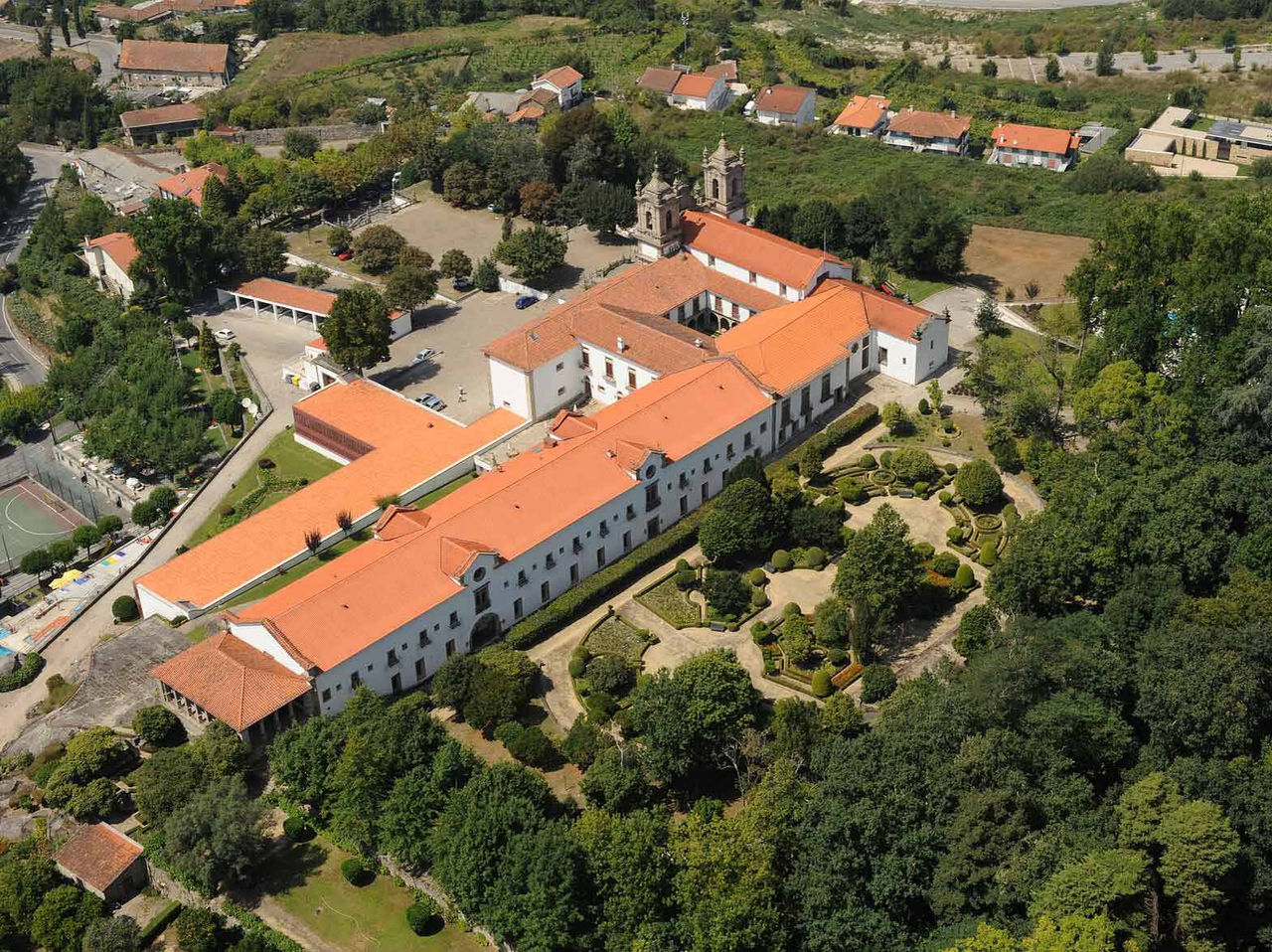 Con aproximadamente 9 hectáreas de extensión, el parque de la Pousada Mosteiro Guimarães combina elementos arquitectónicos y paisajísticos rodeados de una densa y variada cobertura vegetal, clasificado como de interés público.